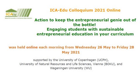The ICA-Edu Colloquium "Action to keep the entrepreneurial genie out of the bottle! Engaging students with sustainable entrepreneurial education in your curriculum" was held online each morning from Wednesday 26 May to Friday 28 May 2021 and was powered by INTRINSIC. The full program and summary notes can be found HERE.